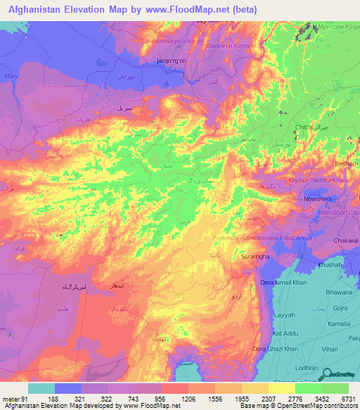 Afghanistan Elevation And Elevation Maps Of Cities Topographic